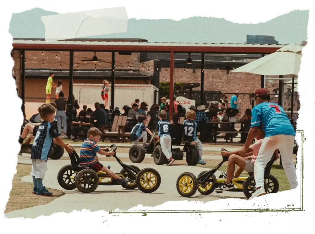 Whether you’re chasing the kids across the lawn or kicking back in a lounge chair, Wild Acre has the perfect pour for everyone from a full lineup of craft beer or unlimited soda from our soda fountain for just $4. Whatever your taste, sip back and relax while the kids run wild on our playgrounds, JumboJumper, and pedal karts. It’s everything you love about kid-friendly restaurants in Fort Worth—with more room to roam, better food, and cold craft beer to top it off.